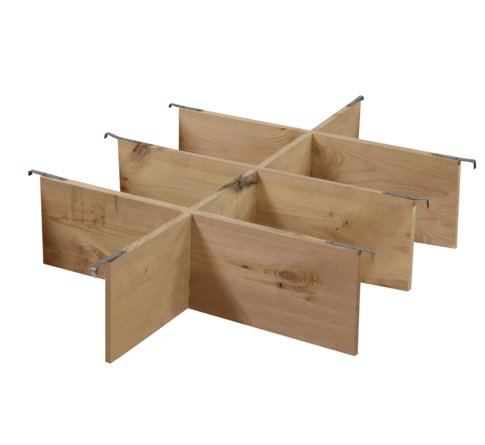 Teiler sind Holzplanken mit Metallhaken, die einfach in die Palette mit ihrem Palettenrahmen eingefügt werden können. Sie dienen dazu, Fächer in Ihrer Verpackung zu schaffen und die Aufteilung, Lagerung und den Transport kleinerer Frachtchargen zu erleichtern. Teiler sind eine großartige Möglichkeit, den gesamten Platz auf Ihrer Palette zu nutzen, während die Fracht gleichzeitig gut organisiert und segmentiert bleibt.